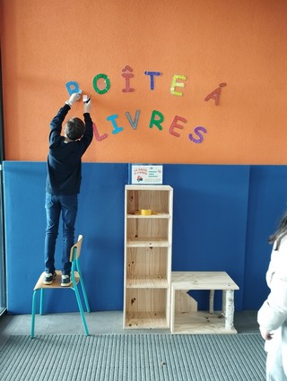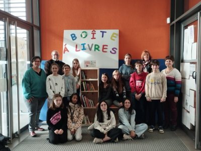 Pensée par les Ecodélégués et construite par les élèves du dispositif Oxygène et leur enseignant monsieur Lafon, la belle boîte à livres du collège est prête.